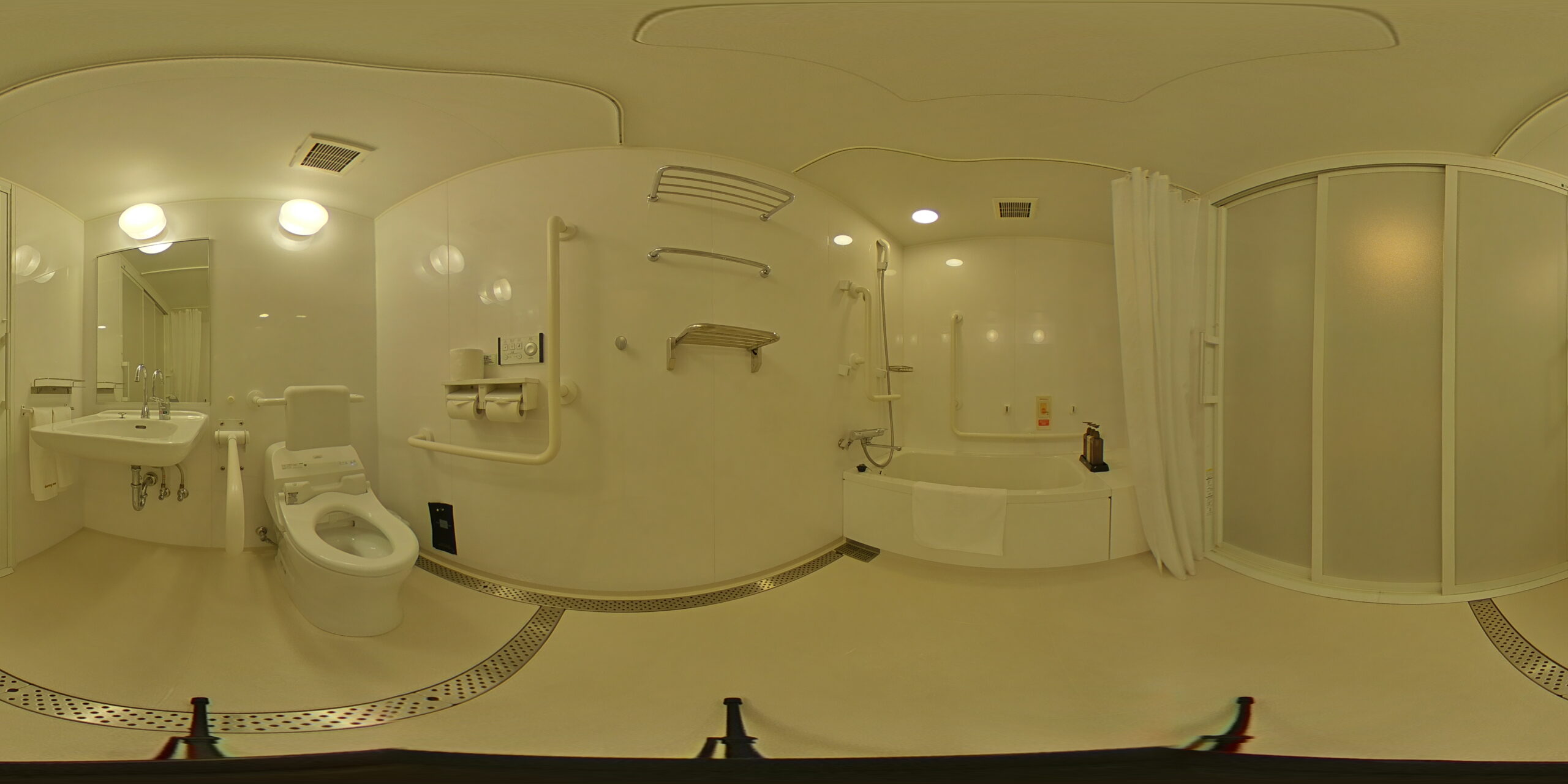 こちらのホテルでは、車椅子をご利用の方やご年配の方も安心して過ごせるよう、ユニバーサルデザインを取り入れた「ユニバーサルルーム」を1室完備。室内は段差なしのフラットな造りで、移動もスムーズ。車椅子でも安心して宿泊できる環境が整っています。
