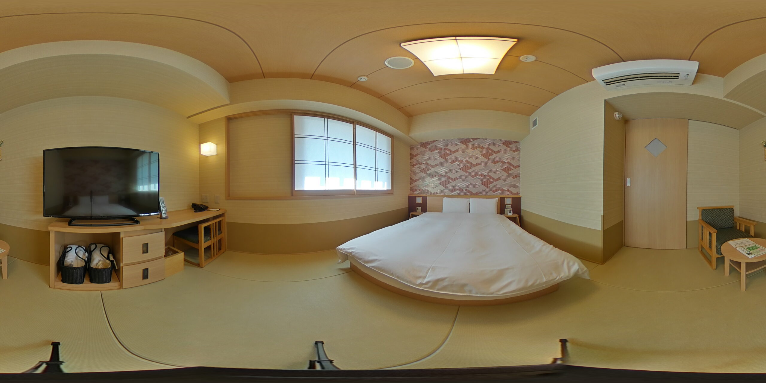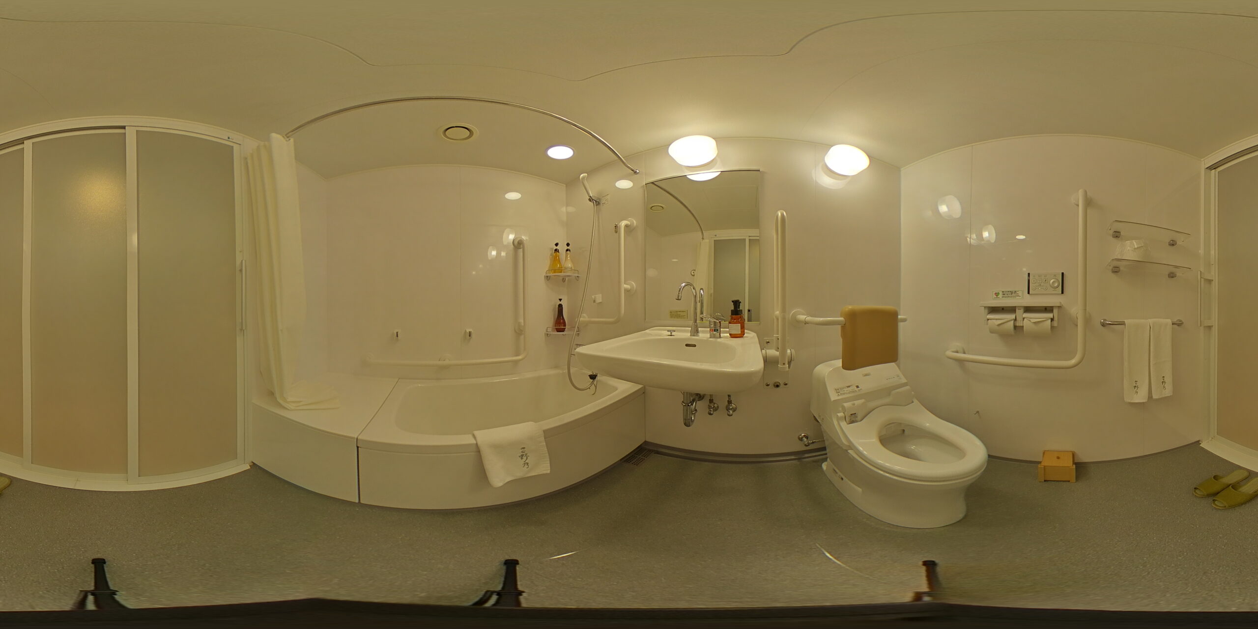 館内には車椅子でも安心な「ユニバーサルルーム」を1室完備。段差なしのフラットな設計や手すりの設置など、ユニバーサルデザインが随所に取り入れられています。1階の天然温泉大浴場「吉野桜の湯」では、奈良市から運ばれる本格的な温泉を堪能。夜はぼんぼりの灯りに癒やされる贅沢なひとときを過ごせます。