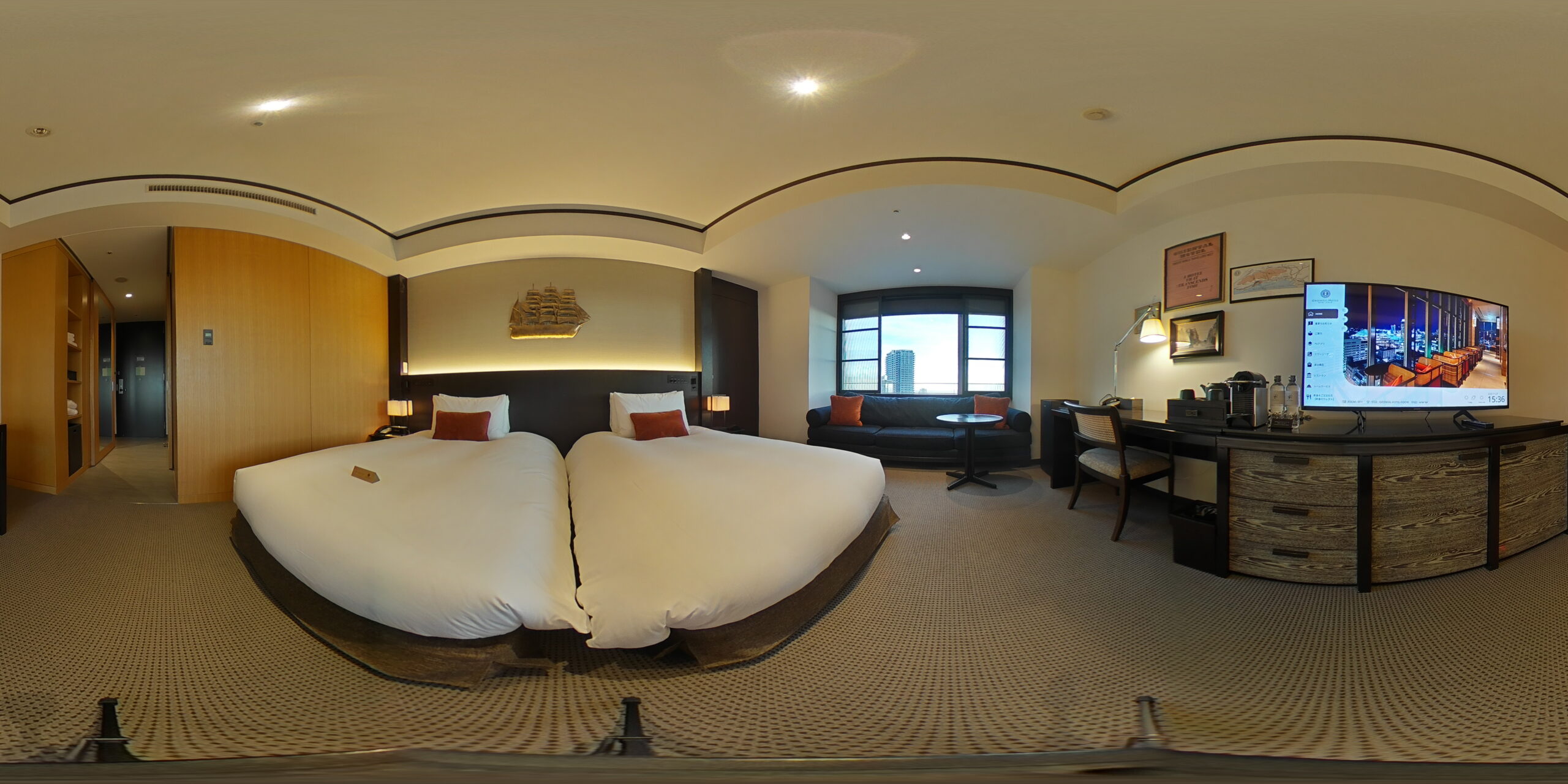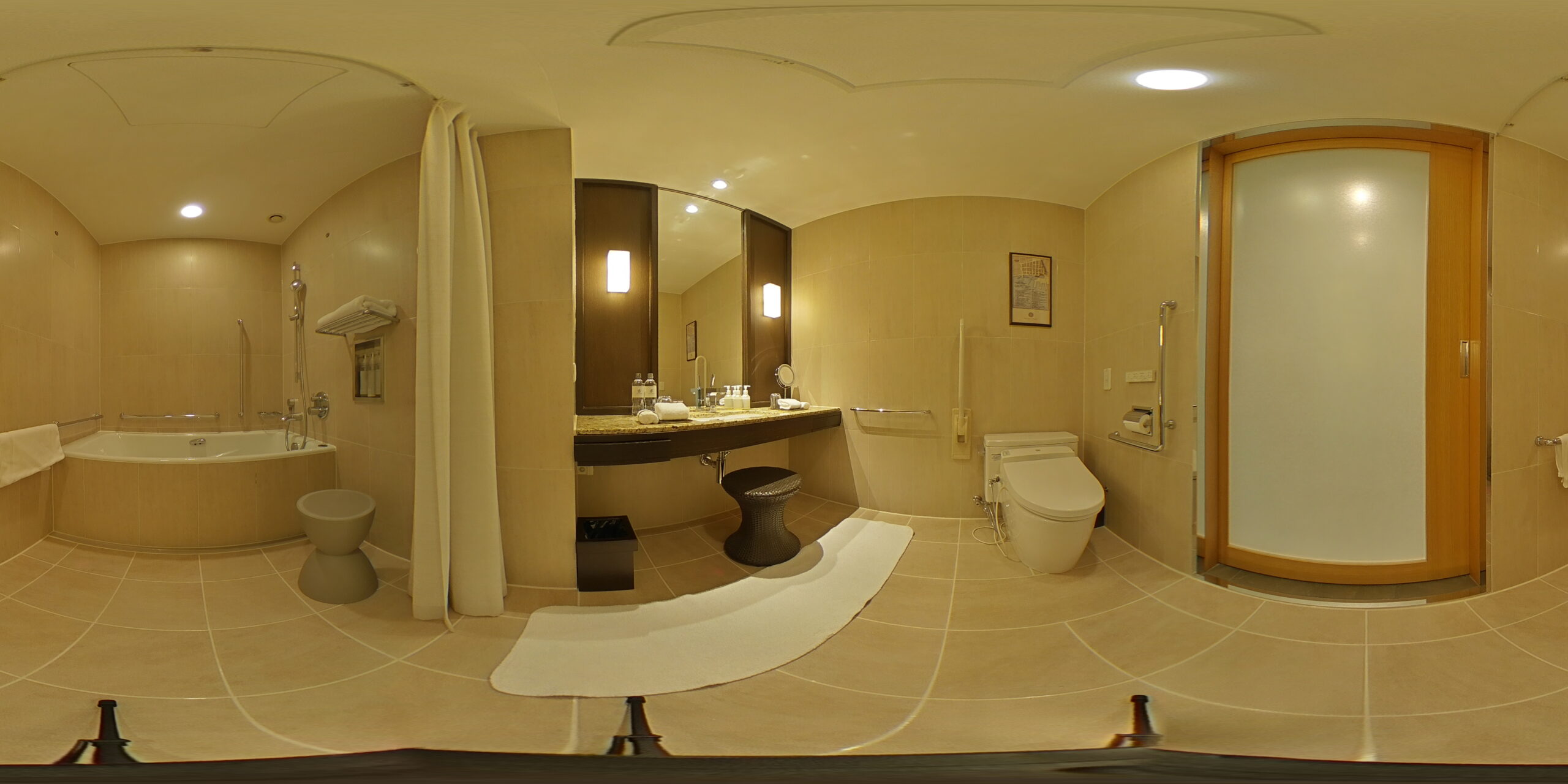 誰もが安心して過ごせるよう、バリアフリーへの配慮も万全です。広々としたユニバーサルツインルームは、室内やバスルームの段差なしの設計で、車椅子をご利用の方もスムーズに移動が可能。各所に設置された手すりや、車椅子対応の設備が整っており、ご高齢の方や介助が必要な方も快適に滞在いただけます。